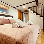 Appartamento Penthouse Lapis invita gli ospiti in un patio e un balcone dotata di un asse e un ferro da stiro e un impianto di climatizzazione, nonché di strutture di intrattenimento come un televisore e una TV a schermo piatto con canali satellitari. Gli interni sono caratterizzati da un divano e uno scrittoio, oltre che da un caminetto e finestre insonorizzate. Quest'alloggio offre 2 camere da letto dotate di cuscini in piuma d'oca. Quest'appartamento comprende 2 bagni che includono un bidet, un bagno alla francese e una vasca da bagno. Il bagno è dotato di asciugacapelli, cuffie per la doccia e teli da bagno.
